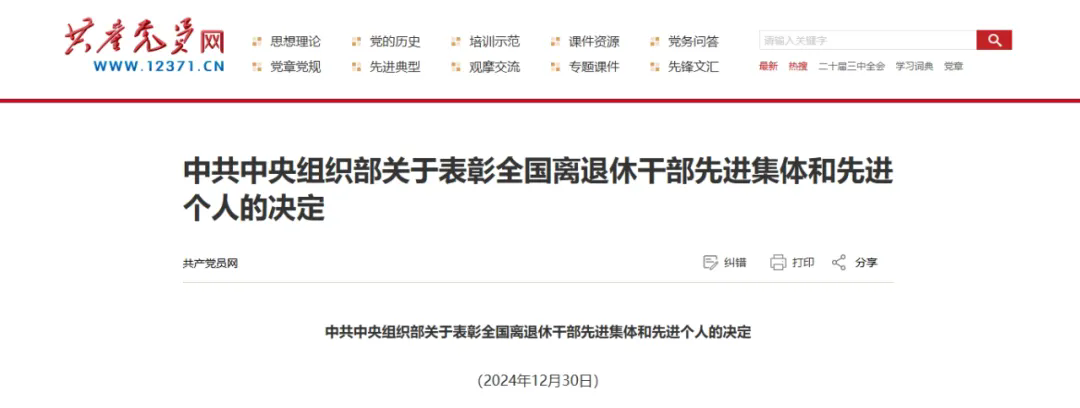 12月30日,中共中央組織部對(duì)150個(gè)全國(guó)離退休干部先進(jìn)集體和450名先進(jìn)個(gè)人進(jìn)行表彰,我市退休干部陳守業(yè)榮獲“全國(guó)離退休干部先進(jìn)個(gè)人”。