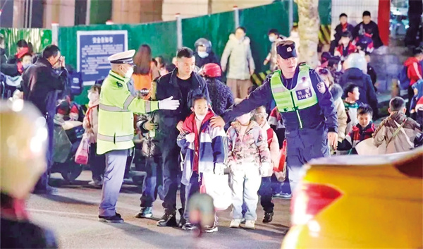 “護(hù)學(xué)崗”切實(shí)保障學(xué)生安全 (供圖:漢濱公安)