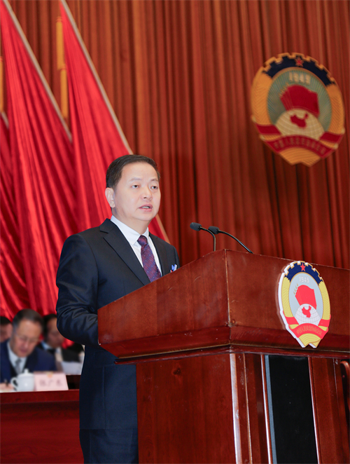 市政協(xié)主席周建功代表政協(xié)安康市第五屆委員會(huì)常務(wù)委員會(huì)作工作報(bào)告。記者 陸青波 攝