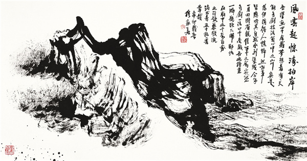 此畫法不僅突破了自己的繪畫瓶頸,還大大拓展了中國畫創(chuàng)作的疆界,將傳統(tǒng)中國山水畫與當代山水畫連接起來。次年,他的焦墨山水畫《石韻圖》就被收入高等教育“十二五”全國規(guī)劃教材/中國重點美術學院系列教材《山水畫教程》。
