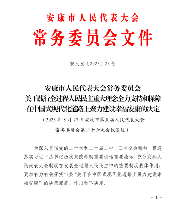本網(wǎng)訊(通訊員 周清華 張凡)8月27日,安康市五屆人大常委會第二十六次會議作出《安康市人民代表大會常務(wù)委員會關(guān)于踐行全過程人民民主重大理念全力支持和保障在中國式現(xiàn)代化道路上聚力建設(shè)幸福安康的決定》(以下簡稱《決定》),并自印發(fā)之日起實(shí)施。以地方人大常委會作出重大事項(xiàng)決定的形式,將黨的主張通過法定程序轉(zhuǎn)化為全體人民的共同意愿,是安康市人大常委會強(qiáng)化擔(dān)當(dāng)、依法履職的創(chuàng)新實(shí)踐,是圍繞中心、服務(wù)大局的務(wù)實(shí)舉措,必將為在中國式現(xiàn)代化道路上聚力建設(shè)幸福安康注入堅實(shí)的人大力量。