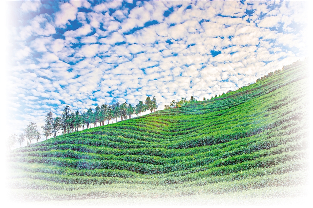 夕陽為雙龍鎮(zhèn)茶園鍍上金邊,王慶發(fā)指著村里的樓房笑:“這都是茶葉換的!民宿也火了,綠水青山真成金山銀山了!”