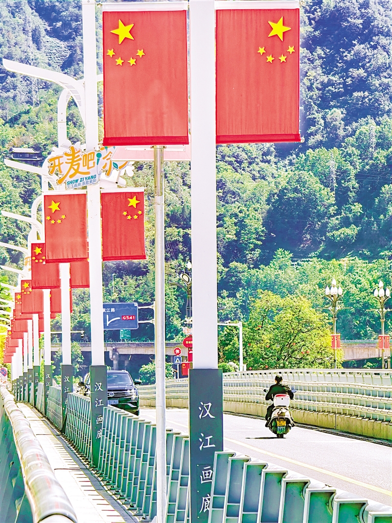 國(guó)慶前夕,漢陰縣城主干道旁懸掛起鮮艷的五星紅旗,一抹抹亮眼的“中國(guó)紅”扮靚了城市。