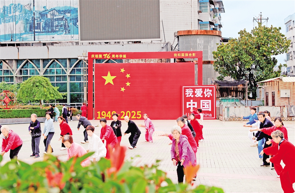 紫陽(yáng)城區(qū)的街頭巷尾,一面面鮮艷的五星紅旗迎風(fēng)招展,處處洋溢著祥和的節(jié)日氛圍。