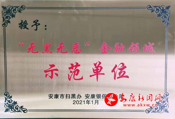 本網(wǎng)訊(通訊員 米安 梁曉波 )近日,寧陜農(nóng)商銀行被安康市掃黑辦公室、安康銀保監(jiān)分局授予“無黑無惡”金融領(lǐng)域示范單位榮譽(yù)稱號(hào)。