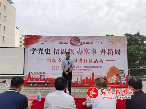 段平安在講話中指出,在慶祝中國共產黨成立100周年之際,在全黨開展黨史學校教育持續(xù)走深走實重要時刻,市住建局聯(lián)合市消防救援大隊、市移民搬遷公司舉辦“消防安全知識進社區(qū)”活動,是學習貫徹習近平總書記黨史學習教育動員大會重要講話精神的實際舉措,是開展“我為群眾辦實事”實踐活動、“學黨史 悟思想 強根鑄魂 奮進新時代追趕超越”主題活動和“安全生產月”活動的重要內容,也是貫徹落實《安全生產法》、加強行業(yè)管理的職責所在。對于這次“送學送教”,市住建局高度重視,與市消防救援大隊、市移民搬遷公司多次溝通,優(yōu)選活動地點、精選宣講人員,力圖通過持續(xù)的“送學送教”,讓管理部門時刻繃緊安全生產這根弦,牢守安全生命線;同時進一步提高廣大居民的安全意識、增長消防安全知識,為營造平安社區(qū)環(huán)境奠定堅實基礎。CqZ安康新聞網