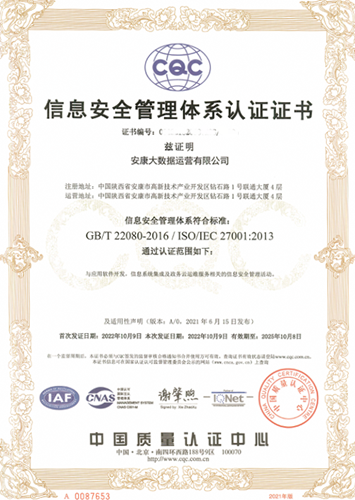 近日,經(jīng)過了全面、專業(yè)、細(xì)致的審核,安康大數(shù)據(jù)公司成功獲得信息技術(shù)服務(wù)管理體系(ISO/IEC20000-1:2018)與信息安全管理體系(ISO/IEC27001:2013)認(rèn)證證書。