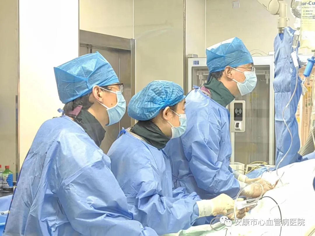 守正創(chuàng)新是引領(lǐng)醫(yī)院高質(zhì)量發(fā)展的動(dòng)力和源泉。在院領(lǐng)導(dǎo)的重視和支持下,心血管內(nèi)科診療新技術(shù)不斷涌現(xiàn),形成了“院有重點(diǎn)、科有特色、人有專長(zhǎng)”的良好格局。2022年安康市中心醫(yī)院心血管內(nèi)科共開展了11項(xiàng)新技術(shù),包括雙腔無(wú)導(dǎo)線起搏器(AV)置入術(shù)、心腔內(nèi)超聲、caFFR應(yīng)用于PCI治療、冠脈旋磨聯(lián)合沖擊波球囊碎石手術(shù)、ECOM支持下冠脈雙支重度鈣化旋磨介入治療、局麻下極簡(jiǎn)式左心耳封堵術(shù)、左側(cè)髂內(nèi)巨大動(dòng)脈瘤帶膜支架腔內(nèi)隔絕術(shù)及分支血管栓塞術(shù)、經(jīng)皮主動(dòng)脈瓣介入換瓣手術(shù)(TAVR)、腸系膜動(dòng)脈栓塞介入治療、Lacbes左心耳封堵器封堵術(shù)、獨(dú)立開展TAVR手術(shù),填補(bǔ)了安康市心血管病診療的多項(xiàng)空白。其中,雙腔無(wú)導(dǎo)線起搏器在全省率先開展,獨(dú)立開展TAVR手術(shù)、冠脈旋磨聯(lián)合沖擊波球囊碎石手術(shù)更是躋身省內(nèi)領(lǐng)先水平。