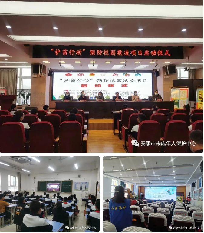 在深入學習黨的二十大精神,全面提升社會主義精神文明,全市人民奮力創(chuàng)建全國文明城市工作的熱烈氛圍下,為進一步深化“護苗行動”的開展,營造安全、文明、和諧的育人環(huán)境,培養(yǎng)學生基本法律意識,幫助他們樹立守法觀念,增強自我保護意識,讓學生懂得運用法律的武器來保護自己。11月9日上午,安康市未成年人保護中心受邀前往漢濱區(qū)城東小學參加“護苗行動”預防校園欺凌項目啟動儀式。該項目資金由山溪行動——陜西省婦兒公益網(wǎng)絡(luò)建設(shè)項目提供,安康市關(guān)心下一代工作委員會、安康市中級人民法院、安康市婦女聯(lián)合會、安康市政府婦兒工委辦、共青團安康市委、安康市未成年人保護中心協(xié)助,安康艾德社會工作服務中心執(zhí)行實施,這是我市第一次系統(tǒng)性引入預防校園欺凌知識體系,項目啟動儀式以直播的形式向漢濱區(qū)城東小學1500余名師生進行轉(zhuǎn)播。