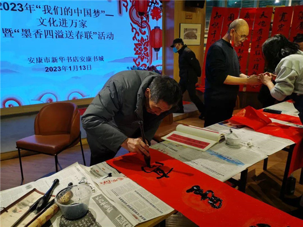 歡天喜地度佳節(jié),張燈結(jié)彩迎新春。春節(jié)將至,為積極踐行社會主義核心價值觀,傳承弘揚(yáng)中華優(yōu)秀傳統(tǒng)文化,豐富群眾精神文化生活,營造歡樂喜慶的節(jié)日氛圍,助力創(chuàng)建全國文明城市。1月13日,安康市新華書店在安康書城舉辦“我們的中國夢”——文化進(jìn)萬家暨“墨香四溢送春聯(lián)”活動。