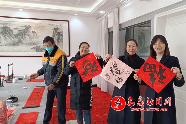 圖為該站書法愛好者集中寫春聯(lián) Wfj安康新聞網(wǎng)