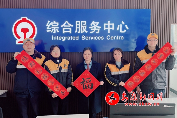圖為該站職工在貨運(yùn)綜合服務(wù)中心向全國(guó)人民送上新春祝福Wfj安康新聞網(wǎng)