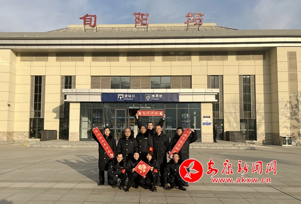 圖為該站職工在旬陽站站前廣場(chǎng)向全國(guó)人民送上新春祝福Wfj安康新聞網(wǎng)