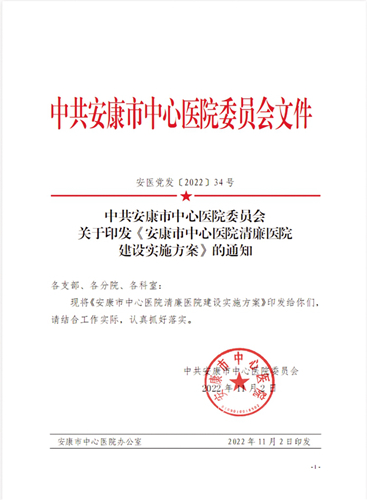 記者:2022年11月2日,安康市中心醫(yī)院黨委印發(fā)了《安康市中心醫(yī)院清廉醫(yī)院建設(shè)實(shí)施方案》。今后一個(gè)時(shí)期,醫(yī)院如何圍繞方案,全面推進(jìn)清廉醫(yī)院建設(shè),切實(shí)把清廉要素融入全方位推動(dòng)醫(yī)院高質(zhì)量發(fā)展全過(guò)程各方面,營(yíng)造風(fēng)清氣正的政治生態(tài)和良好發(fā)展環(huán)境?