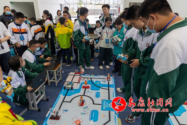 比賽現(xiàn)場,參賽選手們信心滿滿,全神貫注地編寫程序、調(diào)試機(jī)器人,根據(jù)競賽項目的任務(wù)要求相互協(xié)作配合,執(zhí)行相關(guān)任務(wù),實現(xiàn)了多種創(chuàng)意,上演了一場精彩絕倫的“機(jī)器人大戰(zhàn)”。賽場上,選手們個個胸有成竹、思維敏捷、身手不凡,充分展示了同學(xué)們的科技創(chuàng)新和動手實踐能力,為全市中小學(xué)人工智能及教育信息化工作寫下濃墨重彩的一筆。