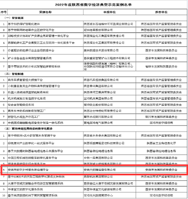 本網(wǎng)訊(通訊員 張騫)近日,陜西省發(fā)展和改革委員會(huì)發(fā)布了《關(guān)于公布2022年度陜西省數(shù)字經(jīng)濟(jì)典型示范案例的通知》,由安康市發(fā)改委推薦,中國(guó)建設(shè)銀行援建,安康大數(shù)據(jù)公司承建的“安康市數(shù)字鄉(xiāng)村服務(wù)與治理平臺(tái)”成功入選。