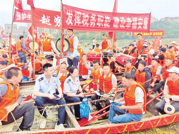 6月20日,漢濱區(qū)稅務(wù)局納稅服務(wù)小分隊(duì)走進(jìn)龍舟節(jié)主會(huì)場(chǎng),向龍舟隊(duì)員和市民介紹稅費(fèi)征繳政策。陳榮斌 攝hRd安康新聞網(wǎng)