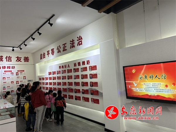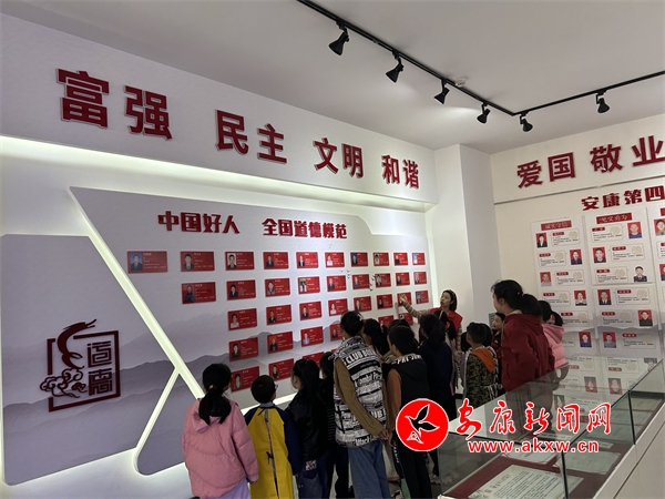 志愿者利用非遺互動墻組織孩子們學(xué)習(xí)《紅軍老祖》的故事,通過文字、圖片以及志愿者的講解讓孩子們直觀了解英雄事跡,了解到“紅軍老祖”這種尊稱背后,寄托著人民群眾對紅軍真誠、淳樸、久遠的熱愛和懷念。隨后,志愿者帶孩子們參觀“安康好人館”,“安康好人館”分成前言板塊、全國道德模范及中國好人板塊、陜西道德模范及陜西好人板塊、安康道德模范板塊,培養(yǎng)和樹立孩子們“誠實守信”“助人為樂”“孝老愛親”“敬業(yè)奉獻”“見義勇為”的文明意識。最后,志愿者將孩子們帶到書畫展廳,通過參觀、講解的方式,讓孩子們感受傳統(tǒng)文化的藝術(shù)魅力,希望孩子們學(xué)習(xí)藝術(shù)作品的構(gòu)圖、色彩搭配、線條等藝術(shù)手法并運用到自己的學(xué)習(xí)當(dāng)中。