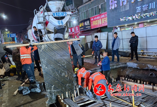 “必須爭分奪秒搶修!”安康市市政園林處黨委副書記、副處長廖邦友當日下午現(xiàn)場指揮調度,協(xié)調人員、機械、物資力量開展路面沉陷搶修工作。在道路現(xiàn)場,已協(xié)調并會同交警對該路段采取封閉措施,設置圍擋和警示牌,提醒車輛和行人繞行。安康市市政園林處道橋管護科組織20余名搶險工人連夜搶修。wad安康新聞網
