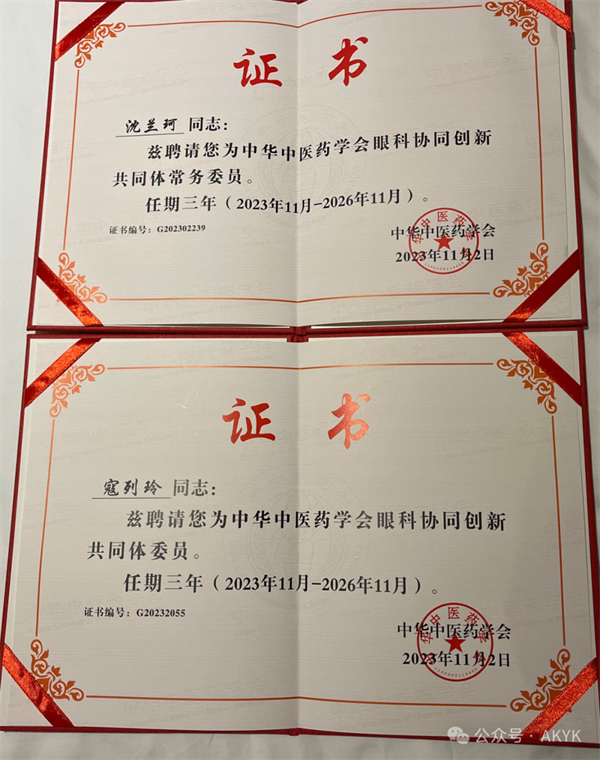眼科醫(yī)院首席專(zhuān)家沈蘭珂教授被聘為中華中醫(yī)藥學(xué)會(huì)眼科協(xié)同創(chuàng)新共同體常委和陜西省中醫(yī)藥學(xué)會(huì)眼科專(zhuān)委會(huì)顧問(wèn)、眼科醫(yī)院院院長(zhǎng)寇列玲被聘中華中醫(yī)藥學(xué)會(huì)眼科協(xié)同創(chuàng)新共同體委員和陜西省中醫(yī)藥學(xué)會(huì)眼科專(zhuān)委會(huì)副主任委員、陜西省中西醫(yī)結(jié)合學(xué)會(huì)整形美容專(zhuān)委會(huì)副主任委員,并獲陜西省中西醫(yī)結(jié)合藥學(xué)會(huì)先進(jìn)工作者;陜西省保健學(xué)會(huì)防盲專(zhuān)業(yè)委員會(huì)先進(jìn)委員、陳利、王滿(mǎn)華、吉夢(mèng)、張亞榮、周楊、張祥等10余人新增省中醫(yī)藥學(xué)會(huì)眼科專(zhuān)委會(huì)常委及委員任職。