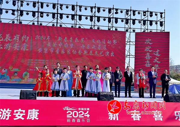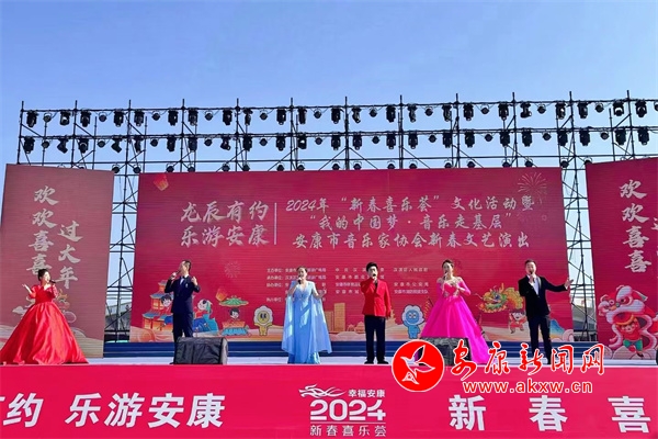 上午10時,張燈結彩的廣場上,花團錦簇,人聲鼎沸,歌聲四起,熱鬧非凡。舞臺大屏幕上“龍辰有約、樂游安康,歡歡喜喜過大年,我的中國夢——音樂走基層”字眼格外醒目。一首由安康十大民歌手周正凱演唱的《清江戀歌》拉開序幕,讓市民們在悠久綿長動聽的音樂聲中去感受新春佳節(jié)色彩斑斕的文化韻味。安康市音樂家協(xié)會副主席李娜、央視《星光大道》優(yōu)秀歌手李剛及音樂家協(xié)會張輝、卜照飛、李銘、張榮榮、周婷婷、秦維強相繼登臺獻歌,《蘆花》《父親的草原母親的河》《卓瑪》等一首首膾炙人口的動聽歌曲,贏得了現(xiàn)場近千名觀眾的陣陣掌聲。特別是獨具藝術魅力的小提琴獨奏《我的祖國》、安康二胡藝術培訓中心小朋友的《北京有個金太陽》、配樂朗誦《在春天的懷抱里》、民樂小合奏《揚鞭催馬運糧忙》無不曼妙爾雅,把演出活動推向高潮。