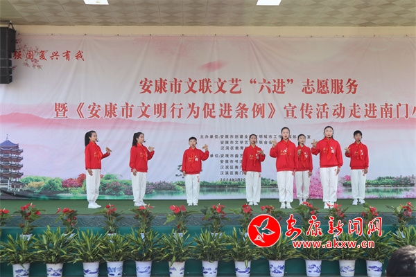 本網(wǎng)訊(見習(xí)記者 張璇)3月20日,由市創(chuàng)文辦、市文聯(lián)主辦的“強(qiáng)國(guó)復(fù)興有我”安康市文聯(lián)文藝“六進(jìn)”志愿服務(wù)暨《安康市文明行為促進(jìn)條例》宣傳活動(dòng)在漢濱區(qū)南門小學(xué)舉行。