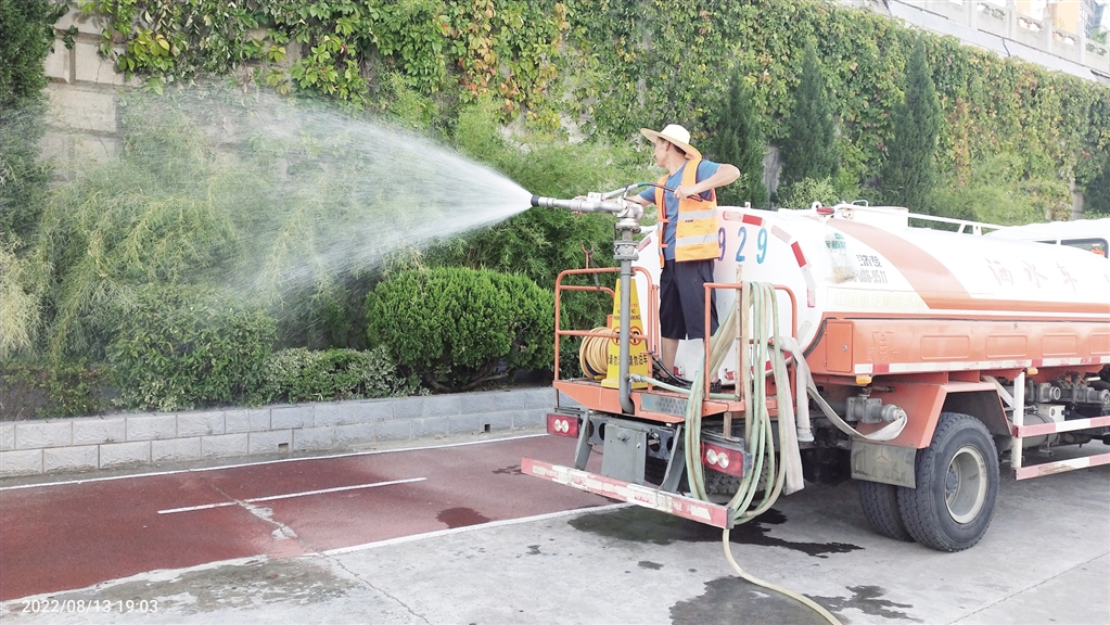 該處采取澆水、松土、修剪措施,黨員干部沖鋒在前,用行動(dòng)詮釋責(zé)任,用奉獻(xiàn)展示擔(dān)當(dāng),用“市政橙”扮靚“城市綠”,抗旱護(hù)綠一線黨旗紅。分區(qū)分段補(bǔ)水,全覆蓋抗旱護(hù)綠。該處采取“分區(qū)域、分時(shí)段、分批次澆灌”方式,對(duì)中心城區(qū)主次干道、公園廣場(chǎng)等公共綠地進(jìn)行抗旱保苗作業(yè)。堅(jiān)持水車澆灌、人工管灌和設(shè)施噴灌等綜合作業(yè)方式,嚴(yán)格落實(shí)“車輛全上、設(shè)備全開(kāi)、晝夜加班、全力以赴”的工作要求,按照細(xì)澆漫灌、澆足澆透的原則,日均出動(dòng)抗旱澆水人員60余人次、灑水車20余臺(tái)次,應(yīng)澆盡澆,確保162萬(wàn)平方米公園綠地的綠化苗木得到充分補(bǔ)水。松土遮陰保濕,全要素抗旱護(hù)綠。針對(duì)行道樹(shù)、灌木帶、草坪及地被植物的不同受旱程度和耐旱能力,加大澆灌頻率,對(duì)易旱和新栽苗木進(jìn)行重點(diǎn)澆灌,并適時(shí)除草、松土、圍堰,防止土壤板結(jié),增進(jìn)土壤蓄水保濕能力;在漢江大橋主橋及北頭轉(zhuǎn)盤(pán)等草坪綠地采取自動(dòng)噴灌系統(tǒng)和人工拉管澆灌結(jié)合作業(yè),不留死角盲區(qū),全方位做好抗旱保綠工作,確?购当C缧Ч。錯(cuò)時(shí)錯(cuò)峰養(yǎng)護(hù),全方位抗旱護(hù)綠。錯(cuò)峰作業(yè),錯(cuò)時(shí)澆水,避開(kāi)城市交通高峰期,避開(kāi)高溫時(shí)段澆水,減少植物水分蒸發(fā)。同步組織專業(yè)技術(shù)人員對(duì)綠化養(yǎng)護(hù)、夜間澆水等作業(yè)情況進(jìn)行檢查指導(dǎo),發(fā)現(xiàn)問(wèn)題現(xiàn)場(chǎng)立即整改,確保做到抗旱不停步、保綠顯成效。