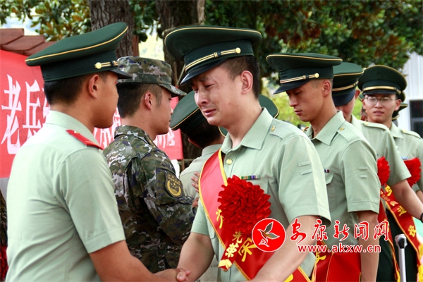 一雙雙緊握的手、一個個深情的擁抱,伴隨著悠揚的音樂,在送行的人群中我們看到了戰(zhàn)友們緊緊相擁,你一言、我一語,無一不訴說著戰(zhàn)友之間無限的眷戀?粗磳⒎謩e的戰(zhàn)友,官兵們再也控制不住內(nèi)心的情感,眼中的淚水如斷線的珠子不斷滑落。這不僅是對軍營生活的留念,更是對軍旅青春的不舍。