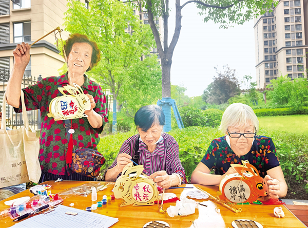 9月12日,漢濱區(qū)江北街道后張嶺社區(qū)在山水嶺居小區(qū)舉辦“中秋佳節(jié)情意濃,文明風(fēng)尚萬家揚(yáng)”活動。活動由居民自己創(chuàng)意進(jìn)行文采、繪畫展示。(胡建波 攝)