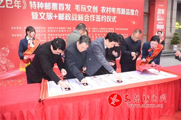 首發(fā)活動(dòng)在安康學(xué)院學(xué)生一支歡快雀躍的串燒街舞中拉開序幕,安康郵政今年將己發(fā)行的生肖郵票結(jié)合安康地方文化宣傳元素,創(chuàng)意設(shè)計(jì)《生肖集!芳乜,現(xiàn)場為《生肖集!芳乜、龍年系列毛玩產(chǎn)品新品發(fā)布、“味在安康”電商禮盒等揭幕,進(jìn)一步推動(dòng)全市文旅事業(yè)發(fā)展。