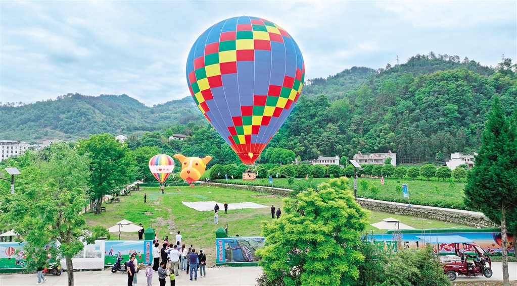“五一”小長(zhǎng)假期間,平利縣策劃了系列文旅活動(dòng),吸引游客觀光游玩。圖為5月2日,游客在平利縣城關(guān)鎮(zhèn)龍頭村熱氣球基地體驗(yàn)熱氣球。沈奕君 攝“五一”小長(zhǎng)假期間,……