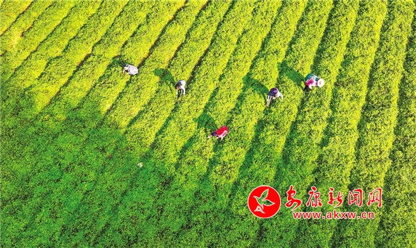 茶園飄香佐龍鎮(zhèn)亂石溝村茶農(nóng)正在采摘春茶。宏大農(nóng)業(yè)公司獼園中工人正在人工授粉。嵐水韻茶業(yè)有限公司工人現(xiàn)場炒茶,展示制茶的流程。從福建跨省來嵐皋流轉(zhuǎn)土地種……