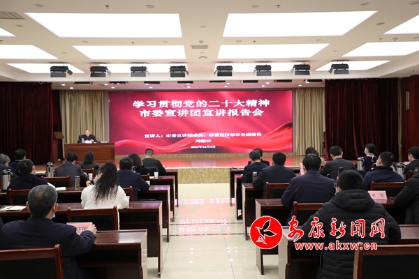 本網(wǎng)訊(實(shí)習(xí)記者 劉淵)12月6日,市直宣傳文化系統(tǒng)黨的二十大精神宣講報(bào)告會(huì)召開,黨的二十大精神市委宣講團(tuán)成員、市委宣傳部常務(wù)副部長(zhǎng)周繼林同志作專題宣講!