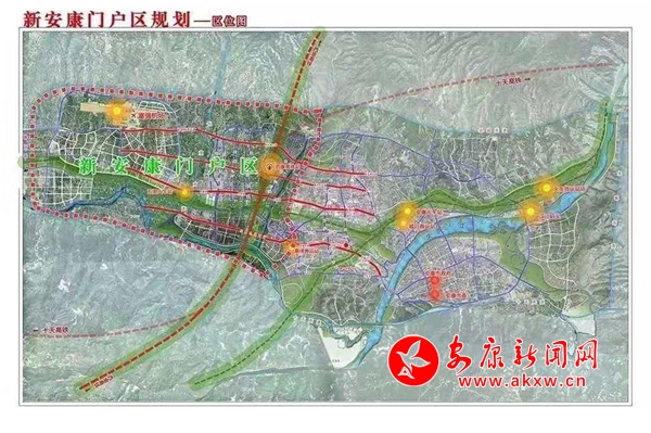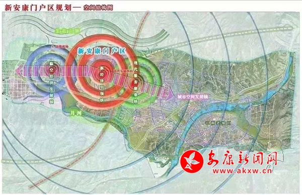 依據(jù)總體規(guī)劃,擬將安康高新區(qū)高新大道以西、北環(huán)快速干道以南、月河流域以北、寨河梁以東區(qū)域的60平方公里,規(guī)劃為新安康門戶區(qū)。在空間布局上,以高鐵安康西站為核心,以新時(shí)代大道、新安康大道、安康大道、創(chuàng)新路4條東西向城市主干道和高新大道、高新七路、高新十路、高新十二路、冉河西路、國賓大道6條南北向城市主干道為軸線,規(guī)劃布局新經(jīng)濟(jì)引領(lǐng)區(qū)、臨空經(jīng)濟(jì)區(qū)、新行政中心區(qū)、現(xiàn)代服務(wù)聚集區(qū)、安康特色產(chǎn)業(yè)區(qū),以此打造“五大”門戶。