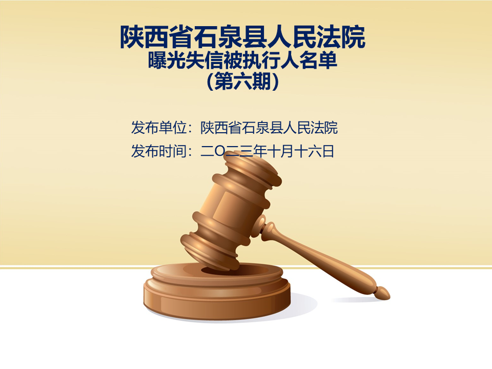 為了進(jìn)一步加大執(zhí)行力度,保障勝訴當(dāng)事人的合法權(quán)益,推進(jìn)社會(huì)誠(chéng)信體系建設(shè),依照《中華人民共和國(guó)民事訴訟法》、《最高人民法院關(guān)于公布失信被執(zhí)行人名單信息的若干規(guī)定》等法律、司法解釋的有關(guān)規(guī)定,現(xiàn)對(duì)一批已進(jìn)入執(zhí)行程序,且尚未全部履行義務(wù)的被執(zhí)行人進(jìn)行媒體曝光,歡迎廣大群眾支持石泉縣人民法院的工作,向我院提供被執(zhí)行人的財(cái)產(chǎn)線索,使生效法律文書能夠得到切實(shí)執(zhí)行,讓人民群眾切實(shí)感受到公平正義就在身邊。
