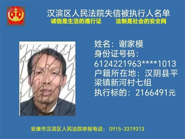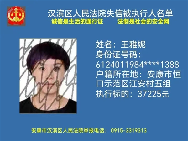 曝光失信 | 漢濱區(qū)人民法院失信被執(zhí)行人曝光名單(2024年第1期)
