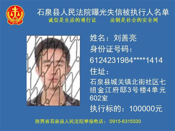 曝光失信 | 石泉縣人民法院曝光失信被執(zhí)行人名單!(2022年第五期)