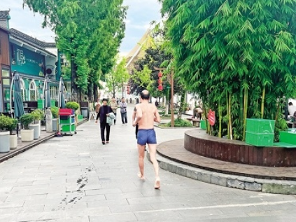9月30日,一位市民著泳裝跑過龍舟文化園,違反文明游泳相關(guān)規(guī)定,成為文明安康不和諧的音符。安文軒 攝……