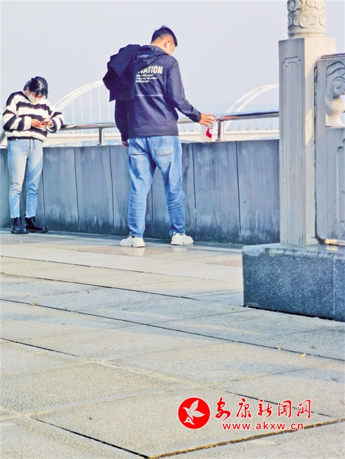 10月28日,市民在漢江大劇院附近游玩,隨地吐痰的現(xiàn)象依然時有發(fā)生。記者 潘潤生 攝……