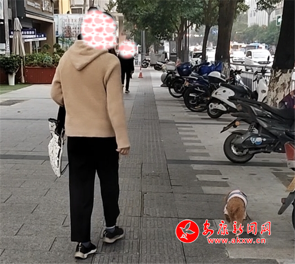 11月8日下午,興安公園小廣場內(nèi)有市民遛狗未牽繩。(圖文/周薇)11月9日上午,大橋路鑫街口人行道上有市民遛狗不牽繩。(圖文/周薇)……