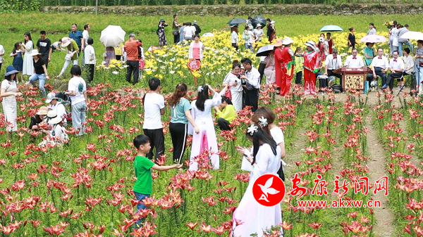 整場活動包括了文藝演出、旗袍秀、花田書法、模特攝影、太極表演、藝術(shù)插花、品嘗百合粥等內(nèi)容。游人穿梭于花海之中,擺出各種拍照造型,恨不得將整片花海都裝進(jìn)他們的鏡頭中。