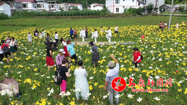 活動當(dāng)天氣晴空萬里,天空中飄著朵朵白云,將滿園的百合花映襯得格外嬌艷。十里八村的鄉(xiāng)親們還有遠(yuǎn)道而來的客人齊聚湘坪村,共赴這場百合花的盛宴。