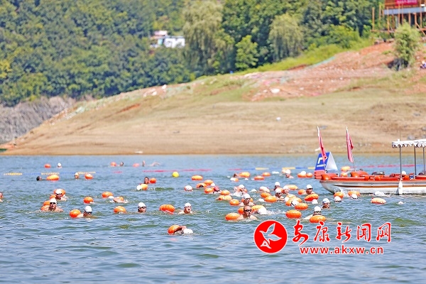 比賽現(xiàn)場,選手們你追我趕,在寬廣的湖中盡情體驗(yàn)湖泊暢游的快感,享受著健身運(yùn)動帶來的快樂。本次比賽場地選在瀛湖風(fēng)景區(qū)翠屏島湖面,相較于傳統(tǒng)賽道比賽模式,天然水域上的比賽不但是游泳技巧的較量,更是勇氣、毅力、耐力的比拼。