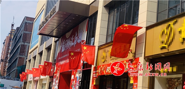 本網(wǎng)訊(實(shí)習(xí)記者 李瑤)為慶祝新中國(guó)成立70周年,安康中心城區(qū)各大商家都陸陸續(xù)續(xù)地在店門(mén)口掛上了顏色鮮艷的五星紅旗,放眼望去,鮮艷奪目的五星紅旗迎風(fēng)飄揚(yáng),為安康中心城區(qū)的街道增添了一道亮麗的風(fēng)景線。jai安康新聞網(wǎng)