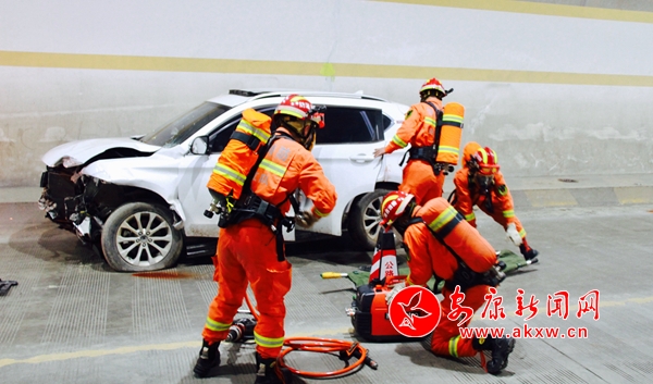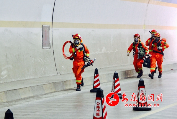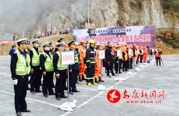 本網(wǎng)訊(記者 張喬)“報(bào)告,接110指令,541國(guó)道151KM+000M處柏枝埡隧道內(nèi)發(fā)生一起小轎車(chē)與危險(xiǎn)化學(xué)品運(yùn)輸車(chē)發(fā)生追尾碰撞交通事故,可能發(fā)生;沸孤缎孤、燃燒爆炸和人員傷亡”。 為提高國(guó)省干線公路隧道突發(fā)事件應(yīng)急處置能力,檢驗(yàn)干線公路突發(fā)事件應(yīng)急預(yù)案可行性,11月22日,安康公路管理局2019年度干線公路隧道救援應(yīng)急演練在G541線K151+000嵐皋縣柏枝埡隧道舉行。
