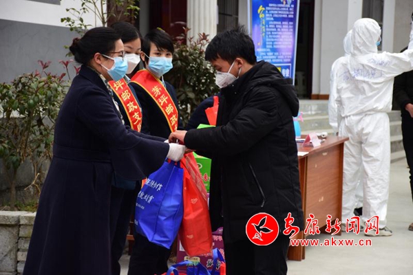 活動(dòng)現(xiàn)場(chǎng),白河縣人社部門(mén)、中國(guó)郵政集團(tuán)白河縣分公司為赴蘇務(wù)工人員贈(zèng)送了愛(ài)心禮包,預(yù)祝他們平安返崗。