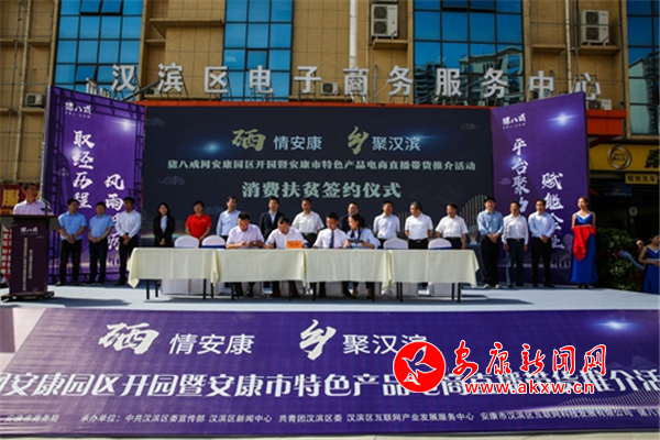 開園儀式上,漢濱區(qū)電商服務(wù)中心與新疆阿克蘇地區(qū)陜西商會(huì)、陜西安康恒河實(shí)業(yè)集團(tuán)發(fā)展有限公司進(jìn)行了消費(fèi)扶貧簽約。豬八戒網(wǎng)安康園區(qū)與安康扶貧空間、高新區(qū)大學(xué)生協(xié)會(huì)等戰(zhàn)略合作伙伴進(jìn)行了現(xiàn)場(chǎng)簽約。省市區(qū)相關(guān)領(lǐng)導(dǎo)見證簽約并共同開啟豬八戒網(wǎng)安康園區(qū)開園暨安康市特色產(chǎn)品電商直播帶貨推介活動(dòng)。