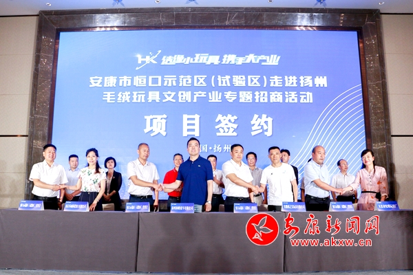 推介會上,恒口示范區(qū)和市直相關部門分別就營商環(huán)境、毛絨玩具產(chǎn)業(yè)政策、金融支持政策及重點項目作了推介。恒安玩具有限公司,安康市毛絨玩具文創(chuàng)產(chǎn)業(yè)協(xié)會負責人和揚州市工商聯(lián)、市毛絨玩具行業(yè)協(xié)會、企業(yè)代表分別發(fā)言,F(xiàn)場簽約項目16個,總金額額18.5億元,涵蓋毛絨玩具文創(chuàng)產(chǎn)業(yè)創(chuàng)意設計、生產(chǎn)加工、倉儲物流和運營策劃等全產(chǎn)業(yè)鏈條和醫(yī)療康養(yǎng)、現(xiàn)代教育等諸多領域。