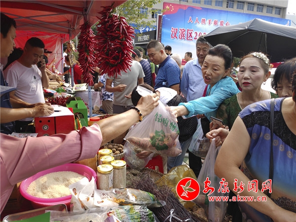 本網(wǎng)訊(記者 張世虎 通訊員 張昊 吳亞君)為深入貫徹落實中省市消費扶貧工作部署要求,進一步提升漢濱全區(qū)消費扶貧工作質(zhì)量水平,9月15日,漢濱區(qū)“消費扶貧月”活動啟動儀式暨扶貧產(chǎn)品采購活動在漢濱區(qū)中心廣場啟動。來自漢濱區(qū)各級幫扶單位負責人,各鎮(zhèn)辦主要負責人,漢濱區(qū)消費扶貧領(lǐng)導小組各成員單位主要負責人,貧困村第一書記等共計1300余人參加活動。
