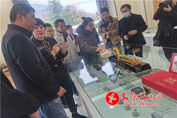 采訪團(tuán)一行首先到達(dá)安康市石泉縣池河鎮(zhèn),該鎮(zhèn)著力圍繞“鎏金銅蠶”打造“金蠶文化。其中,“鎏金銅蠶”文創(chuàng)產(chǎn)品展銷中心是陜西歷史博物館授權(quán)掛牌的全省首家縣級鎏金銅蠶文創(chuàng)產(chǎn)品展示推廣中心,也是國內(nèi)首家以鎏金銅蠶文化為內(nèi)核打造的文創(chuàng)展銷平臺(tái)。明星旅游村屬于金蠶小鎮(zhèn)打造的農(nóng)桑體驗(yàn)版塊,該村依托蠶桑產(chǎn)業(yè)和鎏金銅蠶文化,積極探索“農(nóng)旅融合”“文旅融合”模式,大力開發(fā)鄉(xiāng)村旅游。目前,已累計(jì)投資8000萬元,建成桑園6000余畝,種植各類桑品種1000余種;建成桑品種博覽園、果桑采摘園、特色民居、桑海小木屋、農(nóng)家樂、空中漂流、山地摩托、天空之鏡、桑海酒吧等一大批旅游體驗(yàn)項(xiàng)目,并配套建設(shè)了桑棲旅游環(huán)線、供水系統(tǒng)、旅游公廁、生態(tài)停車場、標(biāo)識導(dǎo)視、鄉(xiāng)村大舞臺(tái)等公共服務(wù)設(shè)施。